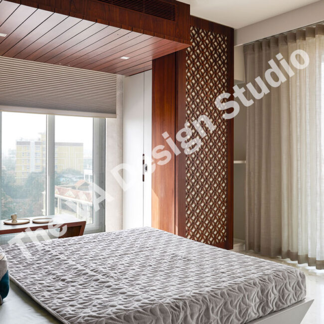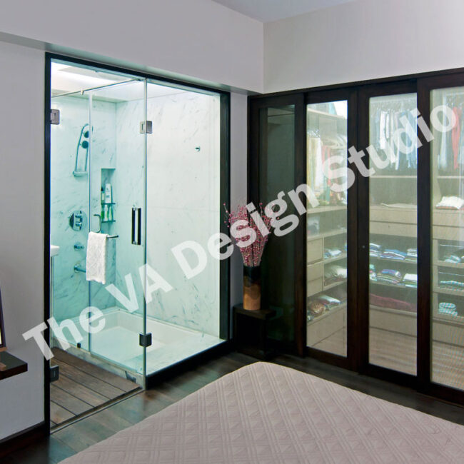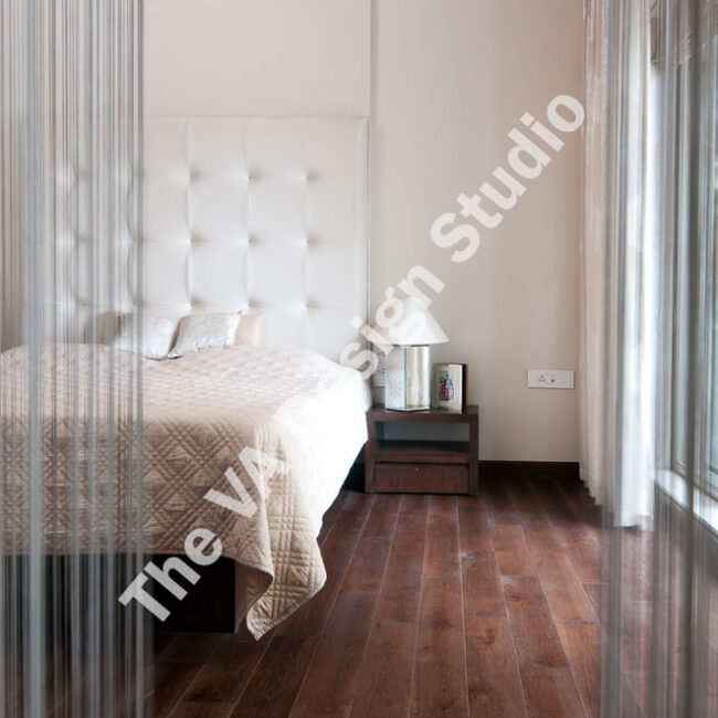 A lavish contemporary tailored to need residence with dark fumed veneer to give it the warm undertone along with a stark white floor.